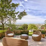 Magnifique Demeure Moulin Saint-Laurent Deauville Avec Piscine & Sauna 12 Pers villa ligt op 25 minuten van de Renbaan Deauville-La Touques en nodigt gasten uit om te ontspannen op een terras.